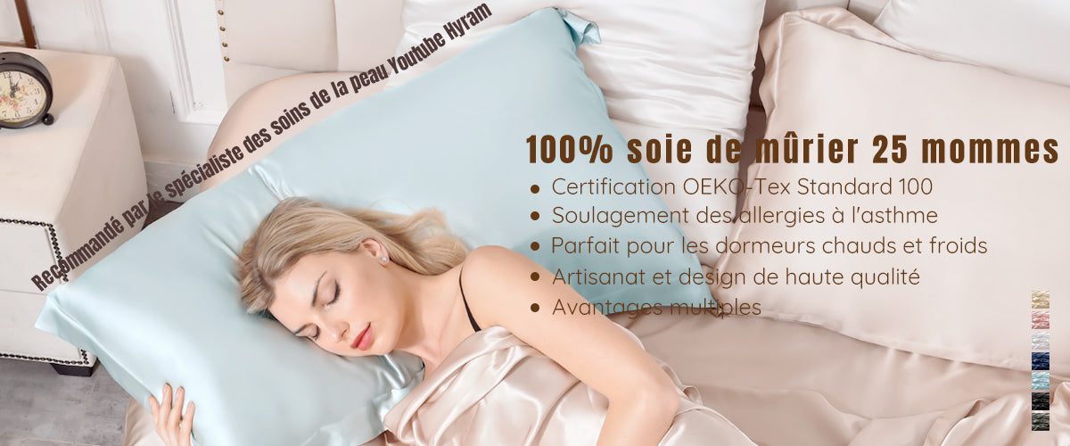 Retient naturellement l'humidité, pour un teint plus jeune et éclatant: Alorsque d'autres matériaux absorbent l'humidité de votre peau lorsque vous dormez la nuit, le tissage dense des fibres de soie aide à garder l'humidité près de votre peau
